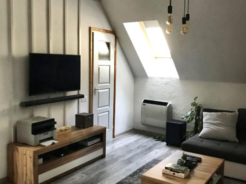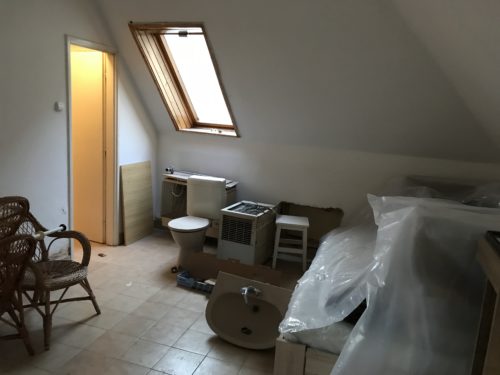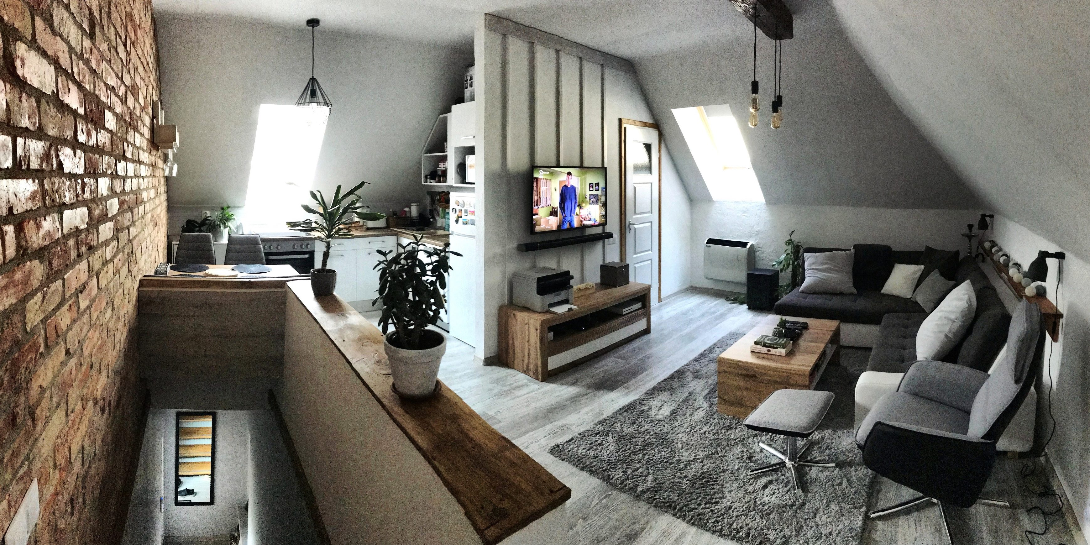 Nemrég fejeződött be egy meglévő tetőtér felújítási munkánk. Az 50 m2-es tetőtér egy nagy helyiséget alkotott, egy saját vizesblokkal. A tetőhéjalás eltávolítása után a szarufák közé 20 cm hőszigetelés lett elhelyezve, majd új cserepes lemez fedést kapott a tető. Belül az új elrendezésben már helyett kapott egy amerikai konyhás nappali, egy háló és egy gardrob is. A régi gázkonvektorokat modern, dizájnos készülékekre cseréltük. Az átalakítás egész kedvező áron és 2-3 hónap alatt megvalósult. Képek lentebb láthatóak.